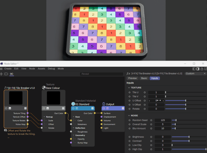 Tile Breaker is a Redshift node asset created to help break the tiling patterns of repeating textures.
