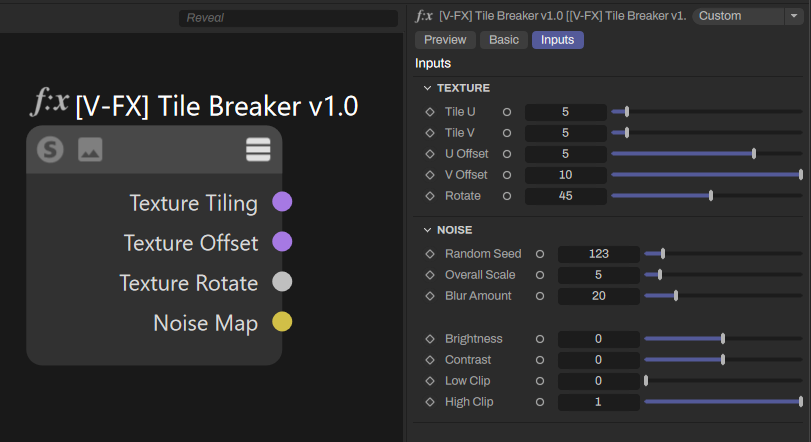 Tile breaker is driven by a voronoi noise map to offset the texture.